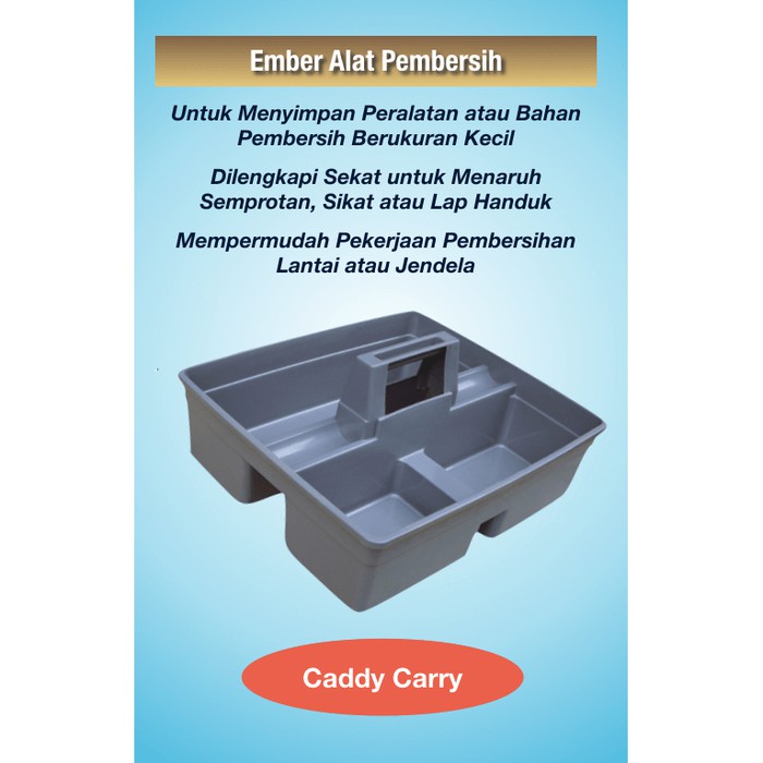 Deskripsi Caddy Carry / Hand-held Tool BucketCaddy Carry / Hand-held Tool Bucket (AF8405)Dari bahan plastik, kuat dan tidak mudah pecahCocok untuk tempat alat pembersihan jendela / lantai, sehari-hari di gedung, kantor atau rumahWarna abu-abuDimensi (cm) : (P) 38,5 x (L) 33,5 x (T) 17VIS Cleaning adalah perusahaan distributor alat kebersihan yang menyediakan berbagai produk, yakni :* Mesin poles, scrubber, vacuum cleaner* Tempat sampah, janitorial & cleaning trolley* High speed cleaning dan produk kebersihan (LAVOR)* Karpet / keset dan produk kebersihan (3M)* Alat pel, pembersih lantai, dan jendelaBahan pembersih (cleaning chemical)VIS Cleaning ada di kota Jakarta dan M