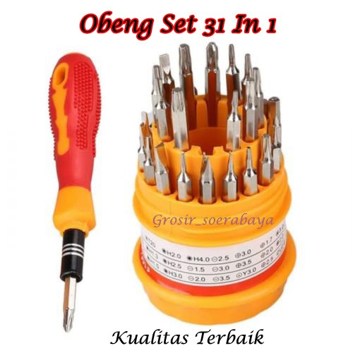Deskripsi Obeng Set 31 in1 Screwdriver Handphone Elektronik HPObeng Magnetic 31 in 1Set obeng kecil lengkap yang terdiri dari 30 kepala obeng + 1 pegangan. Ujung obeng bersifat magnetik. Setiap rumah wajib memiliki setidaknya 1 set obeng ini.Ukuran: 5*11.5cmBahan: Stainless Steel + PlastikTOOLS HARUS DIPUNYA DI RUMAH! Dengan obeng 31 dalam 1 set ini kamu tidak lagi pusing cari atau punya berbagai obeng. Mau betulin apa saja jadi lebih mudah dan tidak repot.Technical DetailsMemiliki Obeng dari yang Besar sampe yang Terkecil dan ber-Magnet sehingga memudahkan sekali untuk pengerjaan pada sekrup kecil.Pekerjaan Rumah tidak Repot lagi, tidak perlu mencari-cari Obeng dengan jenis tertentu, cukup 1 alat semua teratasi.Kuat dan Kokoh tidak gampang Rusak !!Bentuknya Simple, Handy dan Praktis, mudah untuk dibawa kemanapun (Persiapan saat Berkendara, di Rumah, di Kantor dll..)Bisa untuk berbagai macam skrup, dari skrup barang2 elektronik seperti televisi, AC, dvd player, ponsel HP, laptop, camera,