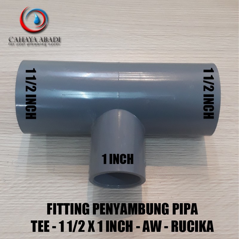 FITTING PENYAMBUNG PIPATYPE : TEE UKURAN LUBANG KANAN DAN KIRI : 1 1/2 INCH AWUKURAN LUBANG BAWAH : 1 INCH AWMERK : RUCIKABAHAN : PVC TE
