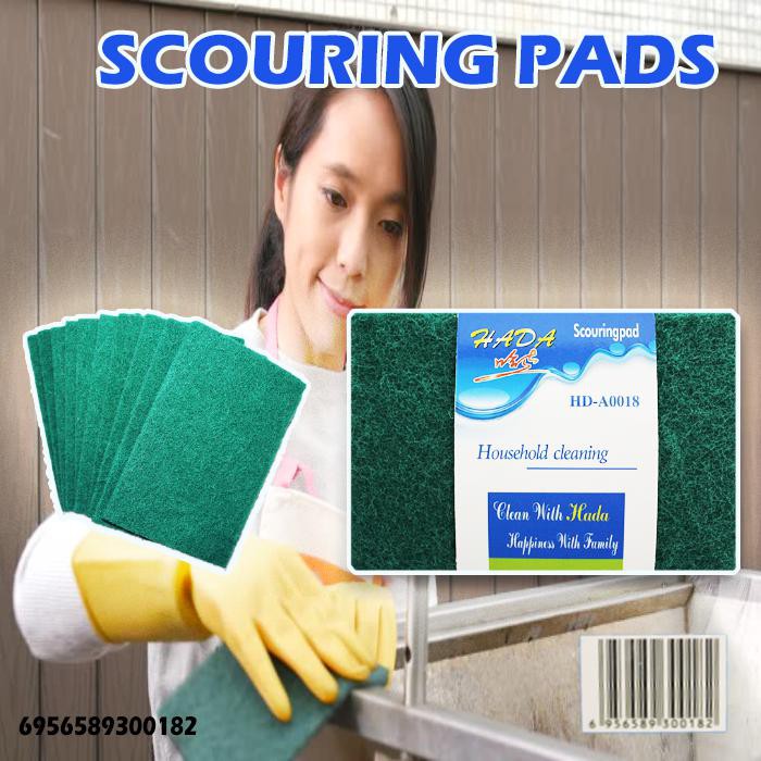 Sebuah pad penggosok atau penggosok adalah alat penggosok piring atau panci dari plastik mesh digunakan untuk menjelajahi permukaan. Scouring pad ini sangat ideal untuk pembersihan sehari-hari sebagian besar peralatan dan peralatan dapur. Ini sangat tahan lama dan tahan lama berkat partikel abrasif yang tersebar di seluruh bantalan, dan juga memiliki manfaat karena tidak berkarat.Dalam 1 Paket terdiri dari 10 pcs Scouring