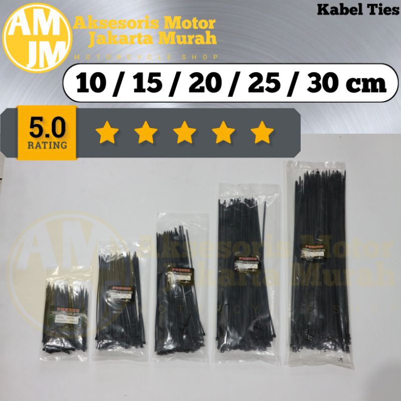 Kabel TiesMerk : PREZZOUkuran : 30 cm / 25 cm / 20 cm / 15 cm / 10 cmWarna : Hitam1 Pack : 100 pcs ( Hitungan Me