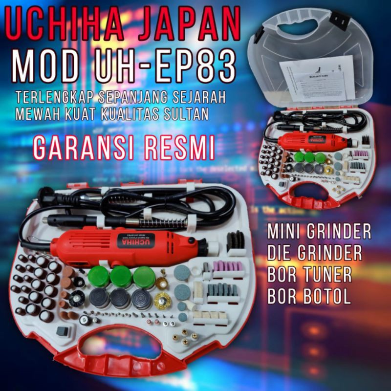 INAYA TEKNIKhttps://youtu.be/T9Uwf-0cDJ8teknologi japan. bergaransi resmi.kualitas terjamin.Edisi terlengkap sepanjang sejarah.(sudah terbukti DIKALANGAN TEKNISI kualitas setara bosch )harga sangat murah. (PROMO)sudah termasuk berbagai kelengkapan yang terlalu banyak untuk disebutkan.Lihat video.spesifikasi Merk : UCHIHAModel : EP83Daya : 130wattVoltase : 220v-230v / 50 HzKecepatan tanpa beban : 15000-35000rpmSpeed bisa di atur (variabel speed )Kapasitas spring chuck : 0.1 - 3,2mmREADY TERUS...! LANGSUNG AJA DI ORDER, GAN...!Gerinda Tuner Mini / Die Grinder tercanggih dan terlengkap.Variable Speed (Kecepatan dapat diatur)Suara mesin sangat halus mulus.*Melayani pembelian secara partai & eceran.Barang berkualitas bos ya jangan samakan dengan merk" murah kyak mollar dll .Semua produk yang dijual dicek fisik dan fungsi. Kami memastikan produk yg dikirim tidak cacat produksi.Baru dan bergaransi.Kami distributor resmi. Bisa eceran dan grosir.Kalau ada yg brani lebih murah kami akan kasih lebih murah lagi dan
