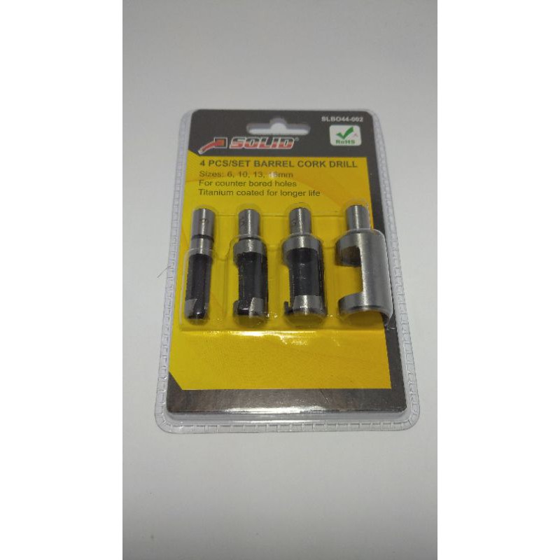 Plug Barrel Cork Drill 4 Set telah sampai namun demikian belum dibuka. Karena terburu harus bertolak pergi .