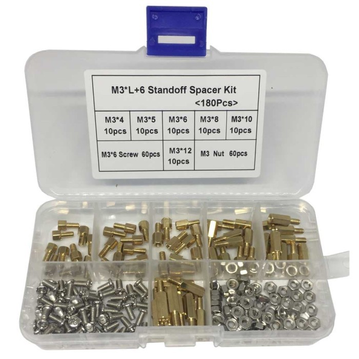 Stand-off spacer kit ini merupakan komponen yang biasa digunakan untuk menaikan suatu perakitan diatas rakitan yang lain. Terbuat dari kuningan dan seringkali digunakan untuk memasang papan sirkuit elektronik pada saat perakitan. Mencegah setiap papan sirkuit saling bersentuhan agar tidak terjadi konsleting.FeaturesElectronics PartKomponen ini biasa digunakan dalam perakitan komponen alat elektronik guna membuat celah Antara satu sirkuit dengan sirkuit lainnya. Komponen ini juga dapat dipakai untuk peralatan lainnya yang ingin dibuat celah agar lebih tinggi kedudukannya.Brass MaterialSet stand-off spacer ini terbuat dari material kuningan berkualitas sehingga sangat kuat dan awet untuk digunakan jangka panjang.Variant SizeTerdapat pilihan ukuran yang dapat Anda sesuaikan dengan kebutuhan Anda.Package ContentsBarang-barang yang anda dapat dalam kotak produk: 10 x M3 x 4 10 x M3 x 5 10 x M3 x 6 10 x M3 x 8 10 x M3 x 10 10 x M3 x 12 60 x M3 Nut 60 x M3 x 6 Screw 1 x Plastic B