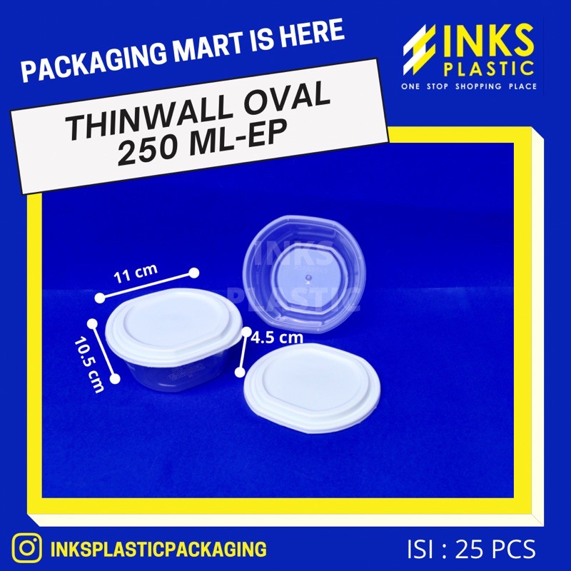 thinwall oval ukuran 250 ml1 pack isi 25 pcs (sudah termasuk tutup)bahan tebal, aman, food