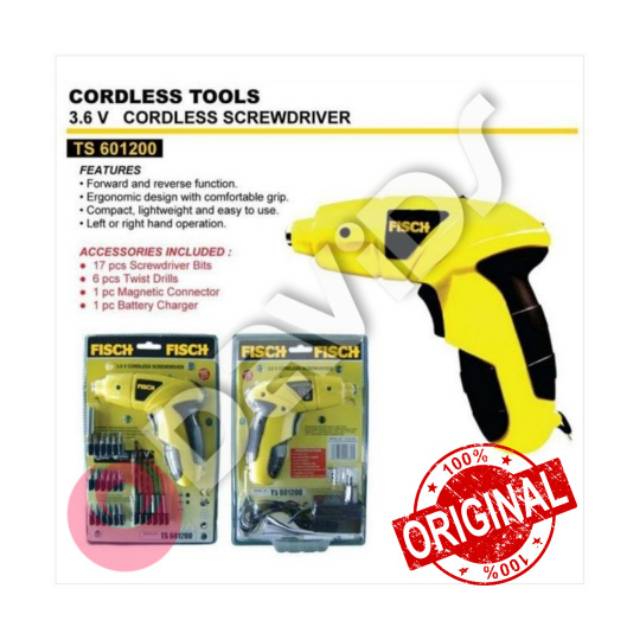 Bor cordless Fisch kami merupakan produk unggulan dari toko kami.Dijamin kualitas dan keasliannya.Kami merupakan agen resmi dari Fisch tools.Spesifikasi:-voltase : 3.6V-Arah pengeboran 2 way /bolak balik-Torsi : 3Nm-Lama pengisian baterai :3-5 jam-Kapasitas kepala bor : 6.35mm Hex-Speed : 180RPM-Baterai : 600 mAh NI CD#BORCAS #BORCORDLESS #BORCHARGER #BORBA