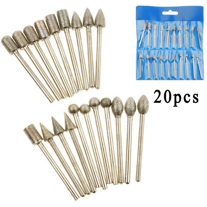 20 Pcs 3mm Shank Berlian Grinding Burr Bor Bits Set Untuk Perhiasan Rotary100% baru dan berkualitas tinggiBahan: berlian + logamWarna: PerakFitur:Ukuran: semua diameter betis sekitar 3mm, semua diameter gerinda sekitar 6mmTotal panjang: sekitar 45mmCocok untuk: grinding, ukiran, memotong garis, dipoles, berongga, ukiran batugiok, ukiran kaca, dllPengerjaan yang baik, kualitas dapat diandalkan, cocok untuk pabrik gantung,pabrik listrik, mesin ukiran, mesin listrik dan perakitan pendukungTerutama digunakan untuk memoles kaca, batu giok, memperbaiki benda keras danbenda keras lainnyaDisadur berlian grinding, itu adalah alat koreksi kesepakatan untuk memprosesberbagai cetakan, karbida, instrumen kaca, dan ukiran batu giokPaket termasuk: 20 pcs x gerinda borBELANJA NYAMAN KONSUMEN S